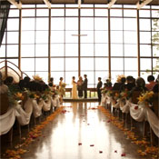 The Sanctuary at Skyline is like having an outdoor wedding - only better because everyone is comfortable! The soaring wood-paneled ceiling and spectacular glass wall are impressive by day and becomes absolutely stunning at night; the feeling is intimate and personal.